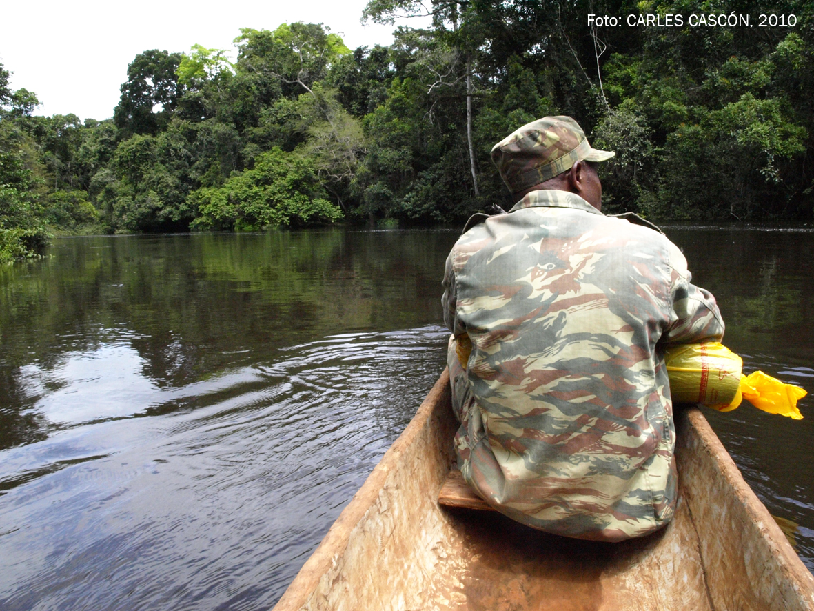 Aquí haig de pagar 10.000 CFA (5.000 per dia de visita) i, atenció, m’obliguen a prendre un guia oficial de l’ECOFAC. Un altre guia, mon Dieu! Segons sembla, ha de vigilar que respectem l’entorn i, més que res, que no cacem cap animal perquè és una zona protegida. Només tenen dret a caçar els Baka, per pura subsistència.