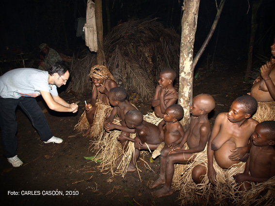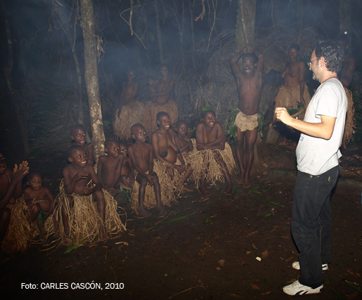 He oblidat explicar una cosa… màgica. Els Baka m’han ofert un gran espectacle de dansa i cants, però jo també hi he posat de la meva part. A banda de ballar amb ells, amb més voluntat que encert, els he fet un parell de trucs de màgia amb cigarrets i monedes i haig de dir que he causat veritable sensació.