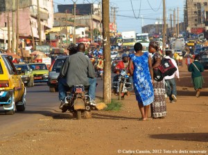 Tornem a la vibrant Bafoussam per fer una birra a la Boulangerie du Peuple, molt animada després de la posta de sol. Acabem la nit amb un “poisson braisé” amb manioc regat amb cervesa a un garito una mica cutre, on la música sona tan alta que quasi no sentim la nostra pròpia conversa. Qualsevol alternativa propera no sembla gaire diferent, així que ens quedem aquí. Ha plogut una mica: s’acosta l’estació de pluges. Me’n salvaré pels pèls.