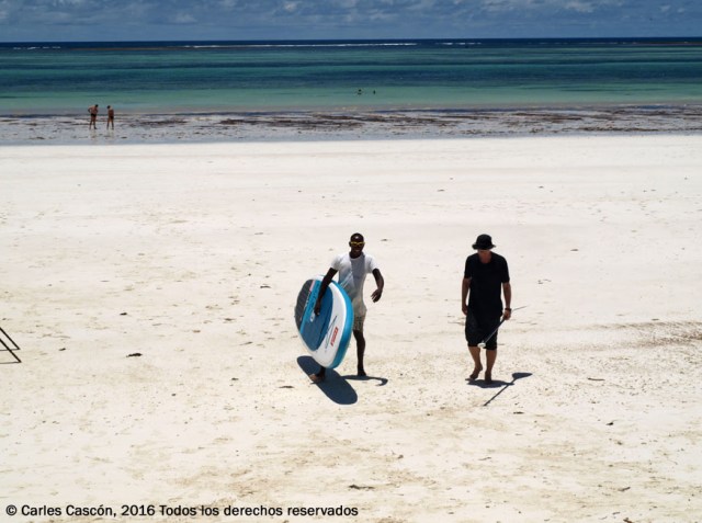 Si el viento es flojo, la alternativa es un par de horas de paddle surf, por ejemplo, y conversar en swahili con los pescadores que me encuentre en el agua con su pequeño dhow o un simple bote para lanzar el anzuelo. Jugar a vóley, andar por la arena, darse un baño o dejarse mecer por la brisa del mar en la hamaca, conversando con los dos Jumas (el grande y el pequeño), Salim o los instructores de la Kite School.