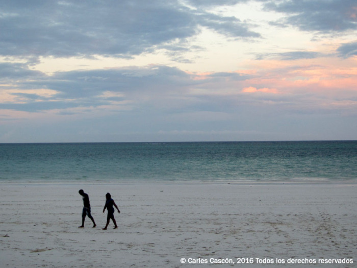 Contra todo pronóstico. Yo, que siempre he buscado islas pequeñas y alejadas del mundanal ruido para una mejor inmersión cultural, que me he dejado seducir por la tranquilidad de Ibo, Ilha de Moçambique o las Querimbas (en Mozambique), Wasini Island y el archipiélago de Lamu con sus pescadores bajuni y su tradición swahili (en Kenya), o Corisco (Guinea Ecuatorial)… no tenía grandes expectativas puestas en la turística Diani, con su larga estela de hoteles, bares y –me temía- demasiados beach boys. Pero África tienes estas cosas, te cautiva sin avisar.