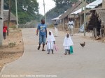 Tras una siesta en la sombra, dimos una vuelta por el pueblo, donde además de descubrir un inmenso baobab centenario, pude por fin entablar conversación con la gente. Tomé café con un dulce casero (a base de azúcar y coco), compré un par de preciosas kangas a una de las chicas y me dejé convencer con el viejo truco del vendedor de libretas y lápices para los niños de la aldea: él te vende el lote para que tu mismo repartas el material entre los niños que te encuentras paseando. Un gesto al que es difícil negarse (a cualquier turista le hará sentirse bien este pequeño gesto de solidaridad efímera) y… que es doble: por supuesto que te venden los “notebooks” a un precio el doble o el triple del real, con lo que “repartes solidaridad” también al vendedor.