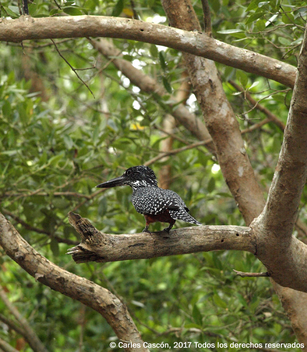 Hay muchos parques nacionales en Kenya donde avistar, en una increíble variedad de hábitats, una fauna ornitológica única (más de un millar de especies, número sólo superado en África por el Congo, dicen). Sin ser el lugar donde ver a los pájaros más espectaculares del país, en aquella mañana, con un rato de agradecida llovizna para mitigar el calor, se dejaron ver a orillas del río Ramisi preciosos ejemplares de Little Egret, Great Egret, Palm-nut Vulture, Kingfisher malachite, Black kite, Madagascar bee-eaters y Giant Kingfisher, entre otros.