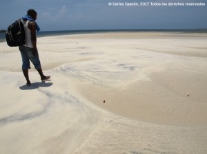 Quedaba el fantástico baño en el “sandbank” (banco de arena), donde puedes sentirte un rato un Robinson Crusoe mientras decides si te remojas perezosamente en las aguas nada profundas de la derecha o te zambulles en lado izquierdo del canal, más profundo, por donde cruzan los dhows del día y algún que otro pescador a remo. Mohamed se echó a hacer la siesta con una camiseta tapándole la cara en este pedazo de desierto de blanco-amarillo cegador mientras yo disfrutaba de la “isla” para mí sólo, haciendo volar la imaginación.