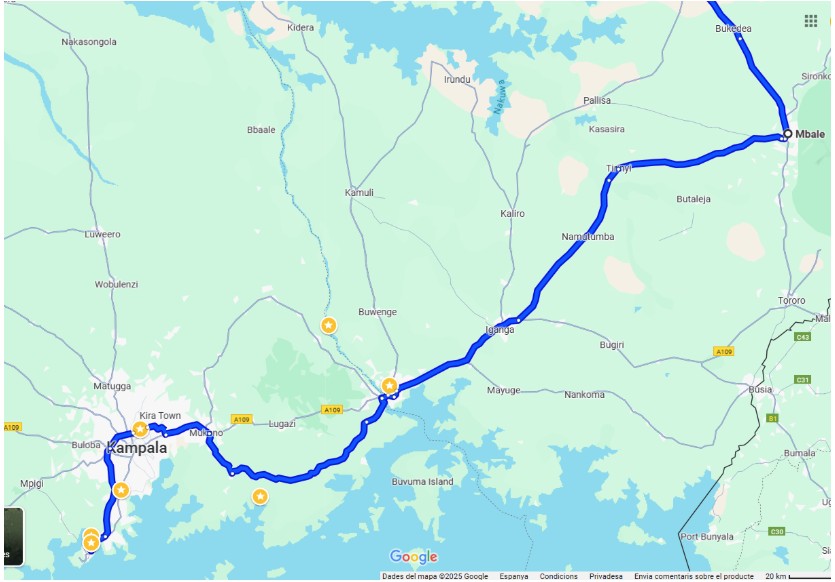 Mapa Uganda Mbale-Kampala-Entebbe
