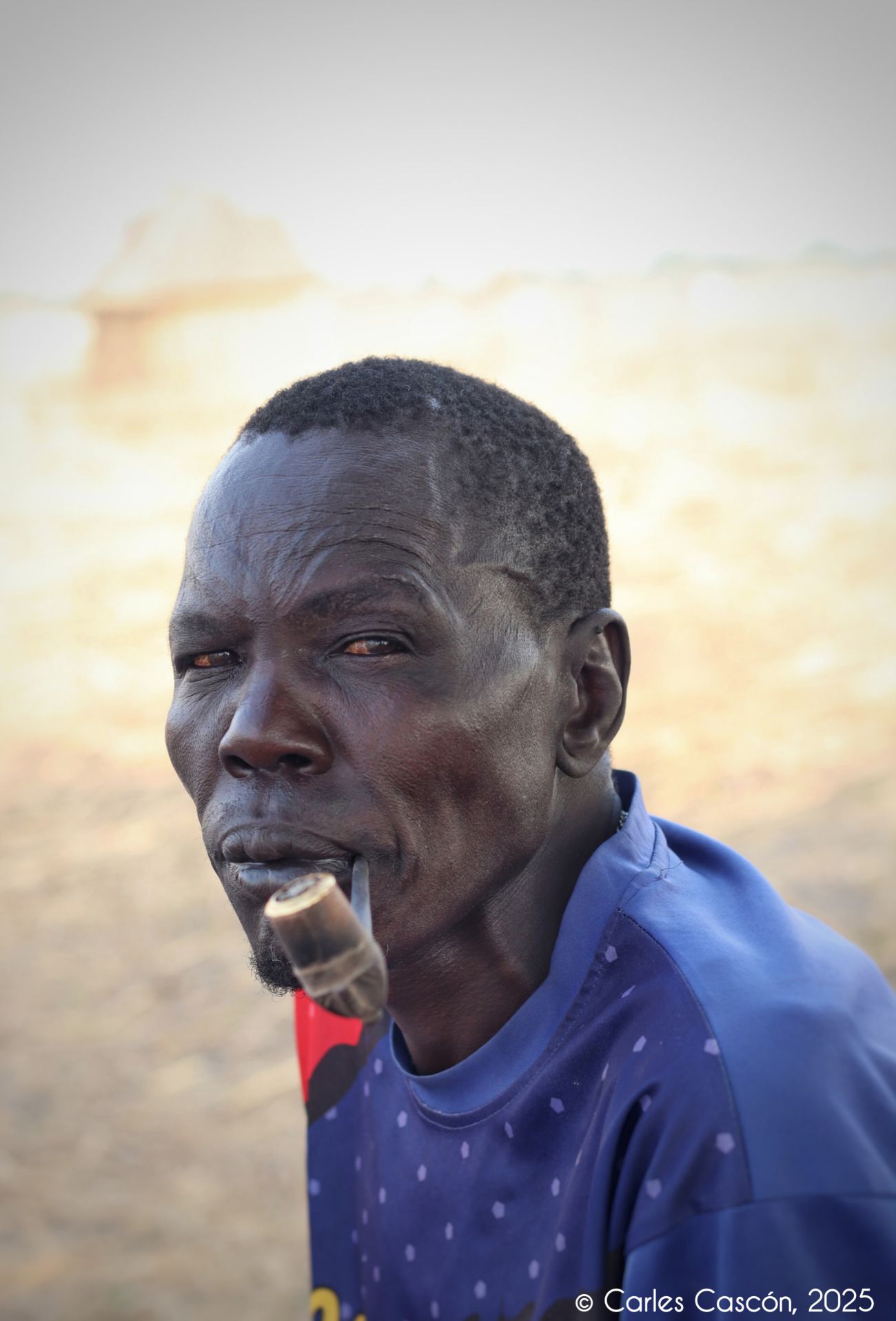 Després de passejar les primeres hores del matí pel campament mundari, comença a ser l’hora de marxar. El ramat ja ha marxat a pasturar i l’activitat s’ha reduït al mínim. Els mundari que queden al campament es deixen fotografiar rel·laxadament i alguns homes aprofiten per fumar la shisha que algun dia els va regalar algun guia local.