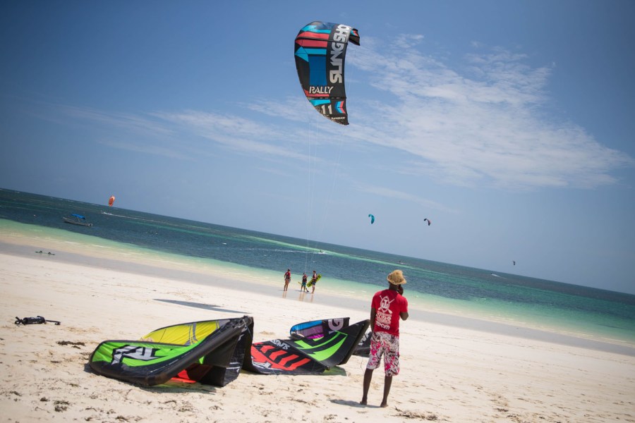 KENYA, Watamu: In a photograph taken by Make It Kenya 16 January 2016, a kite-surfers are seen off the beach of the Indian Ocean coastal village of Watamu. Kenya’s famous wildlife and beautiful tropical coastline is being showcased in a series of live web broadcasts using state-of–the-art technology. #KenyaLive has enabled people to witness the excitement of a night safari in the Mara in real time using specialist night-vision equipment and is now in Watamu highlighting the work of the turtle conservation organisation Local Ocean Trust, and other activities including stand-up paddle boarding with dolphins, snorkelling and scuba diving by using the scial media application Periscope. MAKE IT KENYA PHOTO / STUART PRICE.